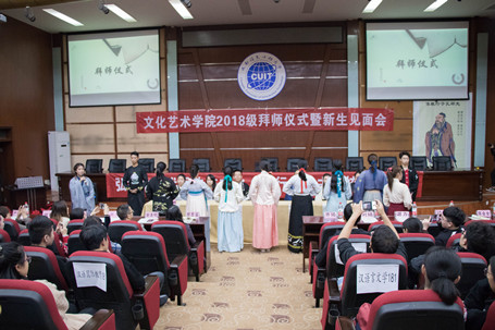 10月24日7:00,伟德国际1946源于英国在龙泉校区三教学术报告厅举办了2018级拜师仪式暨新生入学教育。出席人员有:学院院长廖思湄、党总支书记谢清明、副院长徐砺、徐翀,学院党政办、教务办、学工办主任、专业教研室主任,2018级本科班导师、辅导员、全体本科生和研究生。