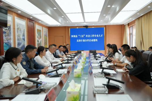 8月29日上午,在阿坝县委社会工作部的支持下,伟德国际1946源于英国“三区”计划社会工作团队与成都市同行社会工作服务中心在阿坝县举行“三区”社会工作专业人才支持计划合作签约仪式,阿坝县委常委、政法委书记、县委社会工作部部长彭光明参加签约仪式,签约仪式上,彭光明书记代表县委社会工作部做了发言,随后我校伍娟副教授进行发言。