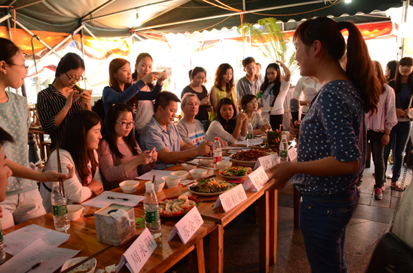 在各位参赛选手代表介绍他们瓜果拼盘特色的同时,其他选手们则开始准备下一轮的厨艺大比拼创意展示了,每组参赛选手们相互配合、有条不紊的进行自己的“创意作品”。在烹饪过程中,现场弥漫着诱人的香味,吸引着在座的各位评委和观众都迫不及待的想去品尝这些美味食物,看着我们的烹饪人员认真投入的神情,队员们也毫不松懈着,比赛期间,学生与老师积极互动、交流,这样不仅拉近了学生与老师的距离,也使得现场活动气氛生动活泼,热闹非凡。而后在规定时间内,各组参赛人员捧出了自己精心制作的“创意作品菜肴”。虽然选手们选用的是最常见的食材,但却做出了别有一番的风味。麻辣鱼、可乐鸡翅、青匆四季豆、糖醋排骨……无论是外观还是味道,更令在场观众和嘉宾赞叹不已。