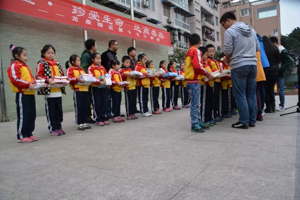 2015年12月7日早晨,为响应四川省教育厅开展文明共建、文化共享“结对子,种文化”的活动号召,并为最大限度利用经典图书节约资源,给我校师生提供一个奉献爱心的平台,继文艺汇演和文化艺术培训活动之后,我校结对帮扶基层单位--龙泉驿区第十七小学(同安小学)周一升旗仪式上举行了图书捐赠仪式。