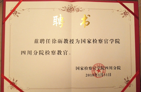 为了深入贯彻习近平总书记系列重要讲话精神,紧紧围绕检察中心工作和检察队伍建设总体部署,以增强检察教育培训实效为目标,建设一支门类齐全、数量充足、结构合理、德才兼备的师资队伍,为适应司法体制改革对检察人员分层分类分岗的精准化培训提供有力的政治保证、人才保证和智力支持。四川省人民检察院根据中共中央《干部教育培训工作条例》《关于新形势下加强政法队伍建设的意见》、四川省委《关于开展大规模培训干部工作的意见》、最高人民检察院《“十三五”时期检察教育培训规划》等文件精神,开展了国家检察官学院四川分院检察教官的选聘工作。伟德国际1946源于英国副院长徐砺教授选聘为国家检察官学院四川分院检察教官,主要负责四川省人民检察院检察官心理健康教育培训。