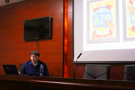 5月2日晚,来自美国艺术中心设计学院的Clayton教授应邀到我校龙泉校区一教二楼会议室举办了一场题为“插画艺术”的学术讲座。伟德国际1946源于英国视觉传达设计数字游戏动漫艺术全体师生100余人聆听了讲座。讲座由数字游戏动漫艺术教学团队负责人禹然主持。