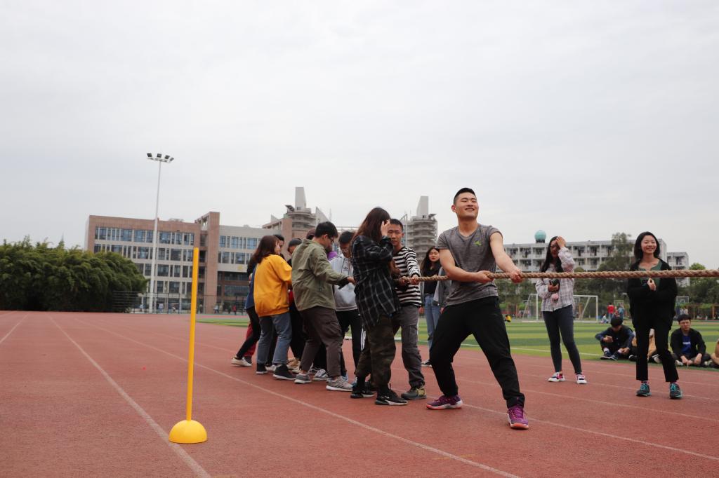 本届趣味运动会以“发展体能,突出趣味竞技性”为主题,比赛项目趣味十足,竞技性强,覆盖了包括“两人三足”,“坐地起身”,“拔河”等比赛项目。趣味比赛不同于体育竞技,它更加注重对体育运动的兴趣培养与个性发展,同学们的参与热情格外高涨。在两人三足比赛中,视传182班以1分58秒的成绩勇夺第一,视传183班和视传181班分别获得坐地起身与拔河比赛项目的第一名。