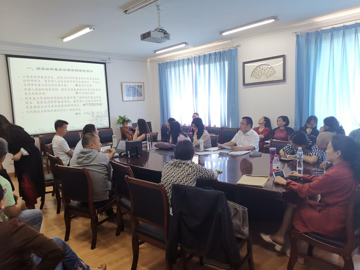 雷勇从国家社科基金后期资助项目的简介、优势和申报注意事项这三大方面为老师们做了详实的申报工作科普,他指出,国家社科基金后期资助项目是促进我国哲学社会科学繁荣发展中的导向作用,鼓励广大社科研究者潜心治学,扶持基础研究的优秀成果,而特设立的国家社科基金后期资助项目,他鼓励有资质的老师积极申报,不断提高己身学术水平,积累科研成果,从而为提升学院的整体科研水平做出贡献。讲座结束后,雷勇和学院老师就具体申报细节,进行了深入交流讨论。