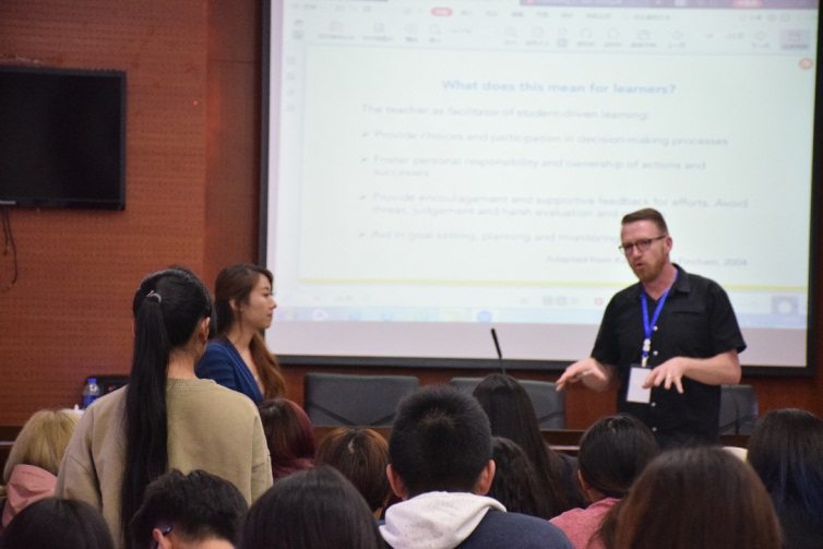 专业任课教师谌力就教授提出的促使好奇心的四个因素为题,询问教授在教学过程中是如何具体实施的。Sam Jacques Annals Cunnane教授以自身教学经验为例,主张发掘学生内心的想法,并通过教师积极引导,将想法一步一步具体实施到效果。