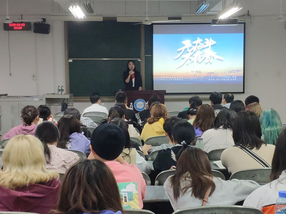 讲座伊始,吴双翼代表学院向各位新生的到来表示诚挚的欢迎,她以“无奋斗,不青春”开场,详细地介绍了视觉传达设计的专业方向、专业特色、发展前景、师资队伍、办学优势等方面情况。为更好地让同学们明确自己大学四年的奋斗目标,她还通过提问的形式,从“我们身处的行业如何?”,“我们要学什么?”“我们将获得什么?”,“我们该如何学?”,“我们该去哪儿?”等问题进行详细分析,并激励新同学们不忘初心,砥砺前行。