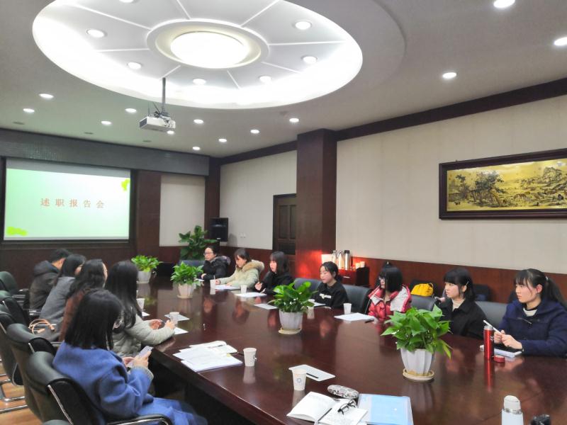 七名实习助理依次进行述职,通过举实例、列数据、图文并茂的方式,全面客观对自己几个月的实习工作做报告和总结。同学们深入地围绕实习工作与实践教学、实习收获与未来的规划、个人感受和工作中的不足、对国际交流与合作处未来发展的建议四个方面进行了述职汇报。每一名实习助理述职结束,对应的分管老师对其实习助理的辛勤工作以及获得的成长表示肯定和鼓励,对工作中存在的问题提出改进方法和建议。