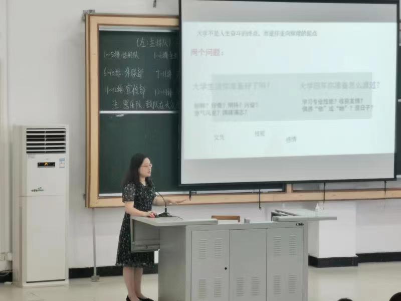 新生辅导员严治华老师做了新生入学教育,引导新生思考未来四年的安排,明确发展方向。其中重点强调了学业规划与自我管理。鼓励新生独立自主,志存高远,树立远大的理想,积极参加社会实践,不断迎接新的挑战。