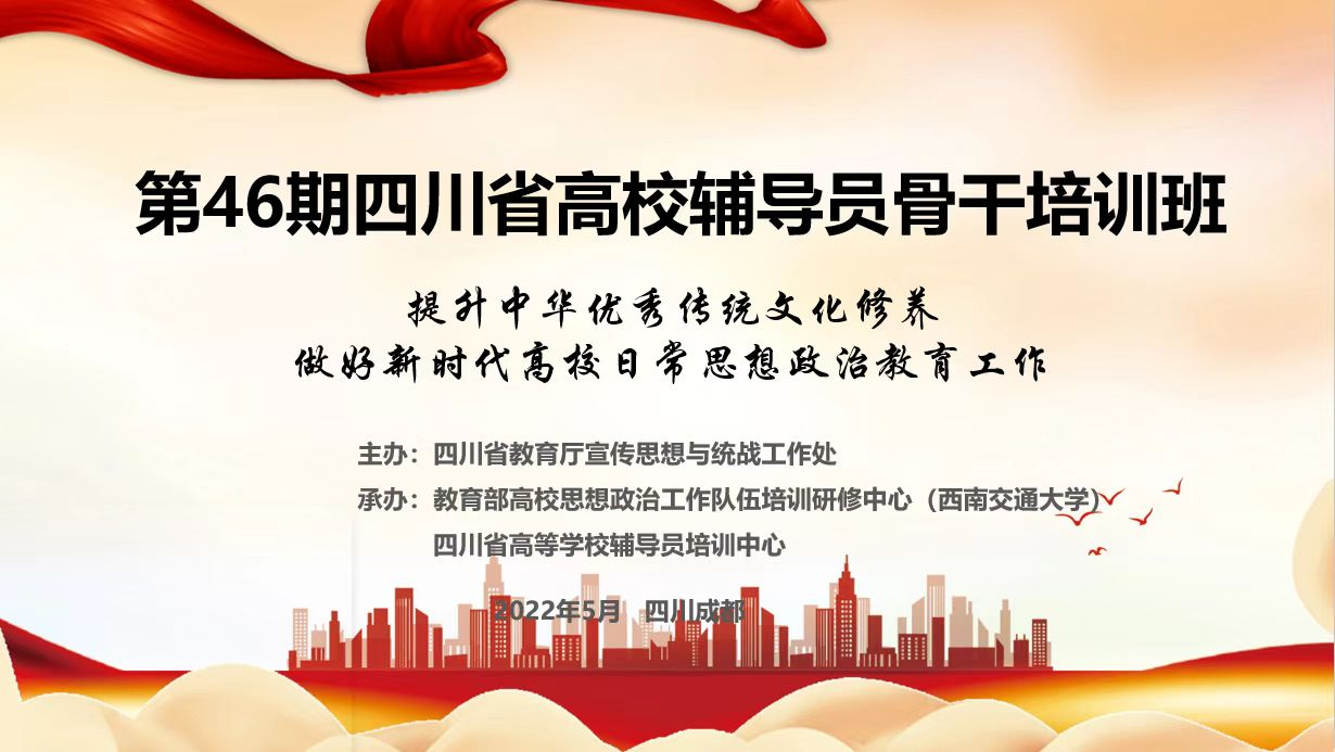 为认真学习贯彻习近平新时代中国特色社会主义思想,深入贯彻落实党的十九届六中全会精神,进一步推动高校思想政治工作专门力量建设,切实培养一支高质量、高水准的高校思政工作骨干队伍,不断提升高校思想政治工作质量。2022年5月9日-10日,由四川省教育厅宣传思想与统战工作处主办、教育部高校思想政治工作队伍培训研修中心(西南交通大学)和四川省高等学校辅导员培训中心承办的第46期四川省高校辅导员培训班在线上顺利开展。来自全省120所高校120余名学工队伍管理干部或专职辅导员代表参与培训,我校伟德国际1946源于英国辅导员李雅婧参加此次培训。