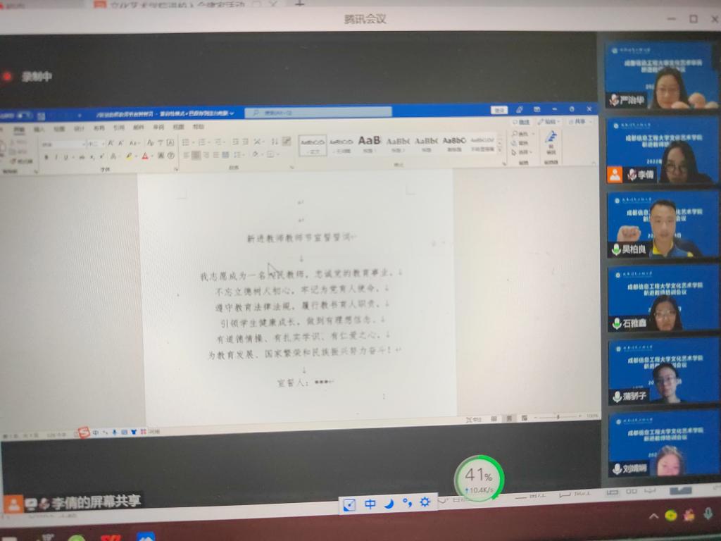 闵卫东对新进教师的加盟表示欢迎,并通过带领新进教师学习《新时代高校教师职业行为十项准则》进行了师德师风警示教育,随后全体新进教师进行了庄严的宣誓仪式。