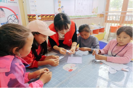 在普通话教学与经典传统文学作品朗诵课上,团队成员帮助同学们纠正普通话读音,体味优秀传统文化的魅力;书法课上,小朋友认真学习正确的书写方法,从一笔一画中感悟“天人合一”“和而不同”;手工绘画课上,小朋友们稚嫩的双手勾勒五彩的缤纷世界;彝普文化交流课上,小朋友们与团队成员进行彝普话语互译,感受语言的神奇魅力和文化交流的美好;气象防灾知识科普课上,团队成员结合知识手册和教学图画让小朋友们体会到自然的伟力和人与自然和谐相处的重要性;手语操课上,小朋友们通过学习《国家》手语操坚定民族自信,厚植家国情怀。