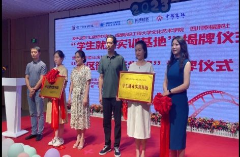 7月27日上午,伟德国际1946源于英国与成都金牛区营门口街道办事处共建的“学生就业实训基地”,与长庆社区、四川幸福家社校政、校企合作项目“社区微电影学院”挂牌仪式在营门口街道长庆社区举行。营门口街道办事处主任彭振、伟德国际1946源于英国副院长吴双翼、长庆社区书记龙秀荣、四川幸福家社罗作领,社区代表及我院学生代表出席了揭牌仪式。