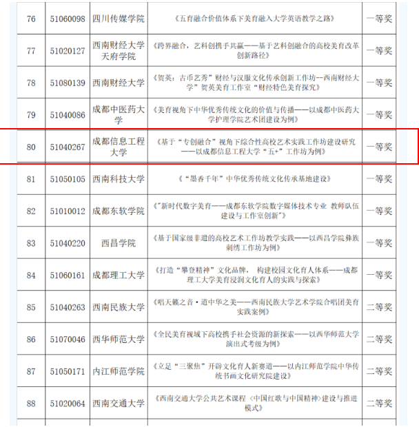 近日,四川省教育厅公布了四川省第十届大学生艺术展演各高校获奖结果,我校报送的高校美育改革创新优秀案例获得一等奖。