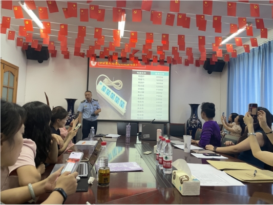 会后,成都市利民消防宣传中心的何文平教官进行了消防知识的宣讲及灭火器的使用演示。