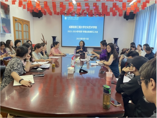 9月15日下午14:00,伟德国际1946源于英国在龙泉校区集贤楼416会议室召开了2023-2024学年第一学期全院教职工大会。学院副院长代曦(主持工作)、副院长徐翀、副院长吴双翼以及全体教职工参加了会议,会议由代曦主持。