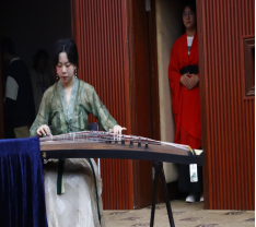 在仪式过程中,还穿插了精彩的文艺节目。流水清泓,荧光飞舞的古风律动,音色深沉,余音悠远古琴弹奏,弦依高和断,声随妙指续的古筝表演,笔走龙蛇、墨合古韵的书法,香茗袅袅,宁静淡雅的茶艺,字正腔圆、语气铿锵的朗诵,让在场的师生充分感受到了传统文化的独特魅力,以及充满活力、守正创新的当代青年风采。