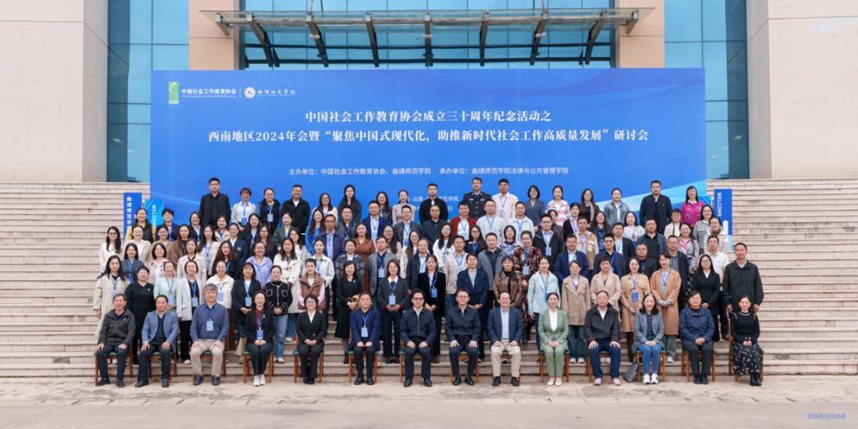 2024年10月26日,中国社会工作教育协会西南地区2024年会暨“聚焦中国式现代化,助推新时代社会工作高质量发展”研讨会在曲靖师范学院召开。会议由中国社会工作教育协会、曲靖师范学院主办,曲靖师范学院法律与公共管理学院承办。