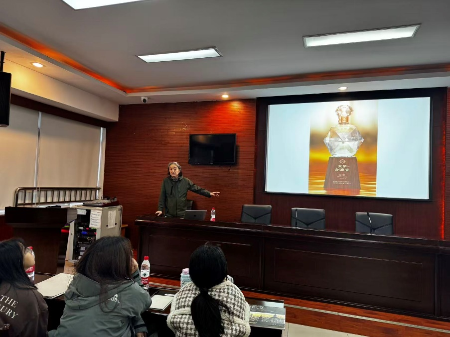 第二场讲座于11 月 5 日下午 13:00 在龙泉1213会议室开展,由四川大学教授陈小林主讲,主题为《未来包装设计触手可及》。陈小林教授以全球化背景下包装设计的发展趋势为核心,通过国内外最新设计案例,展示了可降解材料在包装中的应用、智能包装的交互设计、地域文化元素在包装中的创新表达等前沿实践,鼓励在场师生打破学科边界,将全球视野与本土文化相结合,在设计中兼顾实用性、创新性与社会责任,为培养国际化设计人才提供了针对性指导。