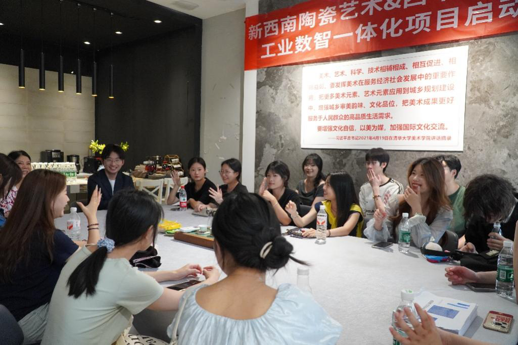 参访期间,文创园负责人带领学生参观了园区的艺展文创中心、生产车间和陶艺工作室等,向同学们详细讲解了陶艺的制作流程以及各类瓷制品的工艺特点。负责人也详细介绍了园区的工程项目,涵盖公共设施、学校建设、家庭装修等多个领域,丰富了同学们的行业实践知识。
