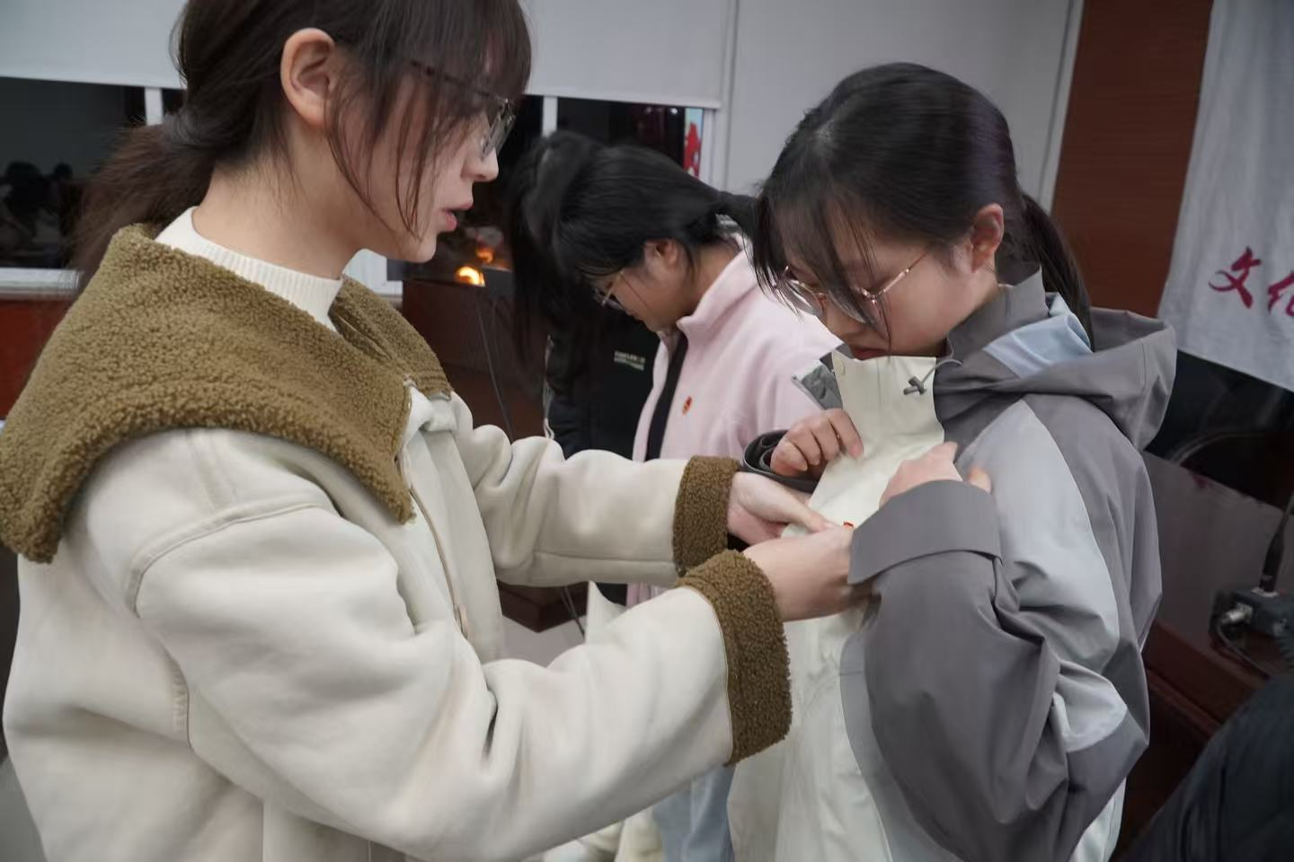 结业仪式后,新发展团员入团仪式接续举行。仪式现场,团委组织部负责人宣读汉学231班张琳等9名新发展团员名单,老团员代表代思曾、陈文璐为新团员郑重佩戴团徽,闪耀的团徽承载着继承革命传统、勇担时代责任的青春承诺。