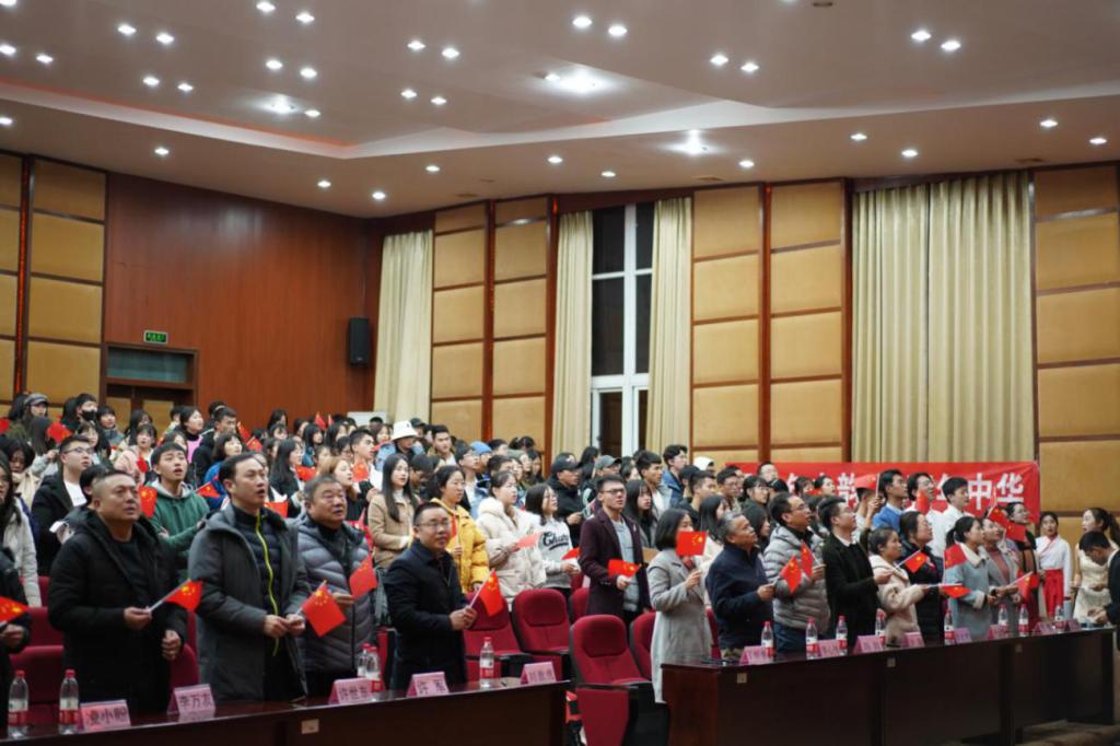 最后,主持人宣布本次比赛的赛制和流程,全场师生挥舞手中的国旗,为祖国的生日而献上赞歌,共同合唱《我和我的祖国》。