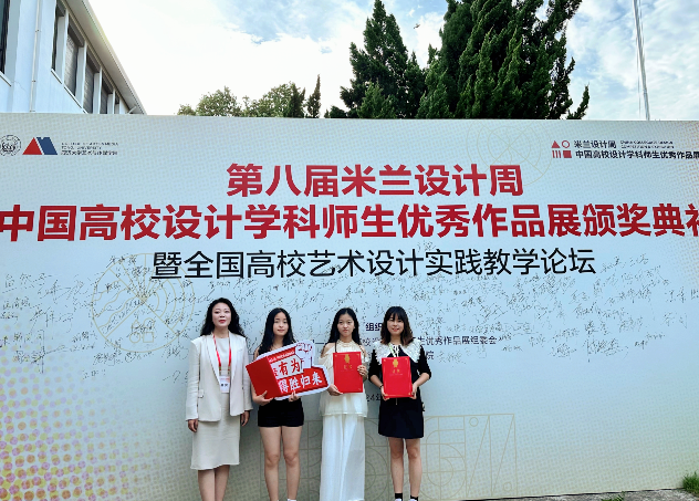“第八届米兰设计周-中国高校设计学科师生优秀作品展颁奖典礼暨全国高校艺术设计实践教学论坛”系列活动于7月27日-7月29日在上海同济大学成功举办,我校学子在此次大赛中喜得佳绩。副院长吴双翼作为邀请嘉宾、向伶梅作为优秀指导教师,带领获奖学生代表杨雨、刘靖瑗参加此次活动。
