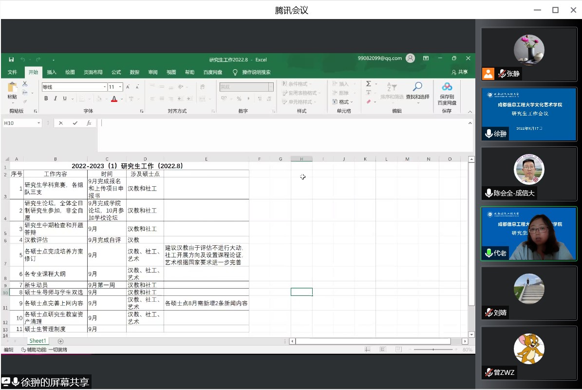 陈会泉、曾为志及刘婧主任首先介绍了三个硕士点研究生工作的推进情况以及目前存在的困难。